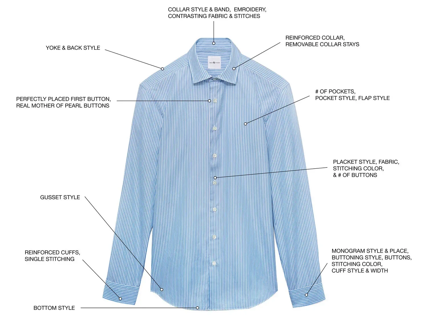Choose your Collar & Cuff Style, Fabric & Pattern, Placket & Pocket Options, Monogramming & Custom Details